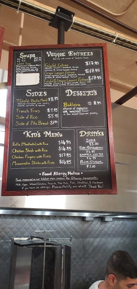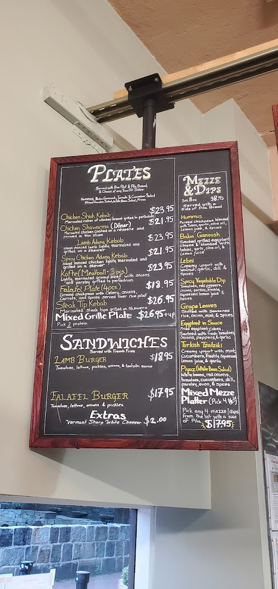 Hummus, grape leaves ( 2 pcs.), falafel (2 pcs.), mixed greens, and white bean salad.Served with side of tzatziki sauce.